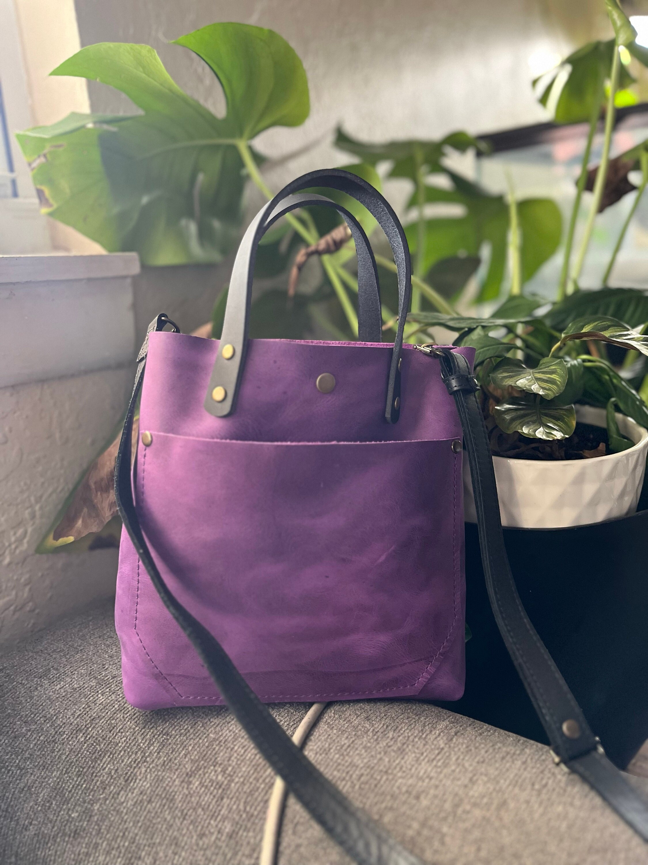 My purse is amazing. Nicole is an amazing talent. I love the color, the contrast between the black straps and purple purse is just so perfect. The leather smells absolutely delicious. This item far exceeded my already higher than normal expectations. I cannot wait to make another purchase.