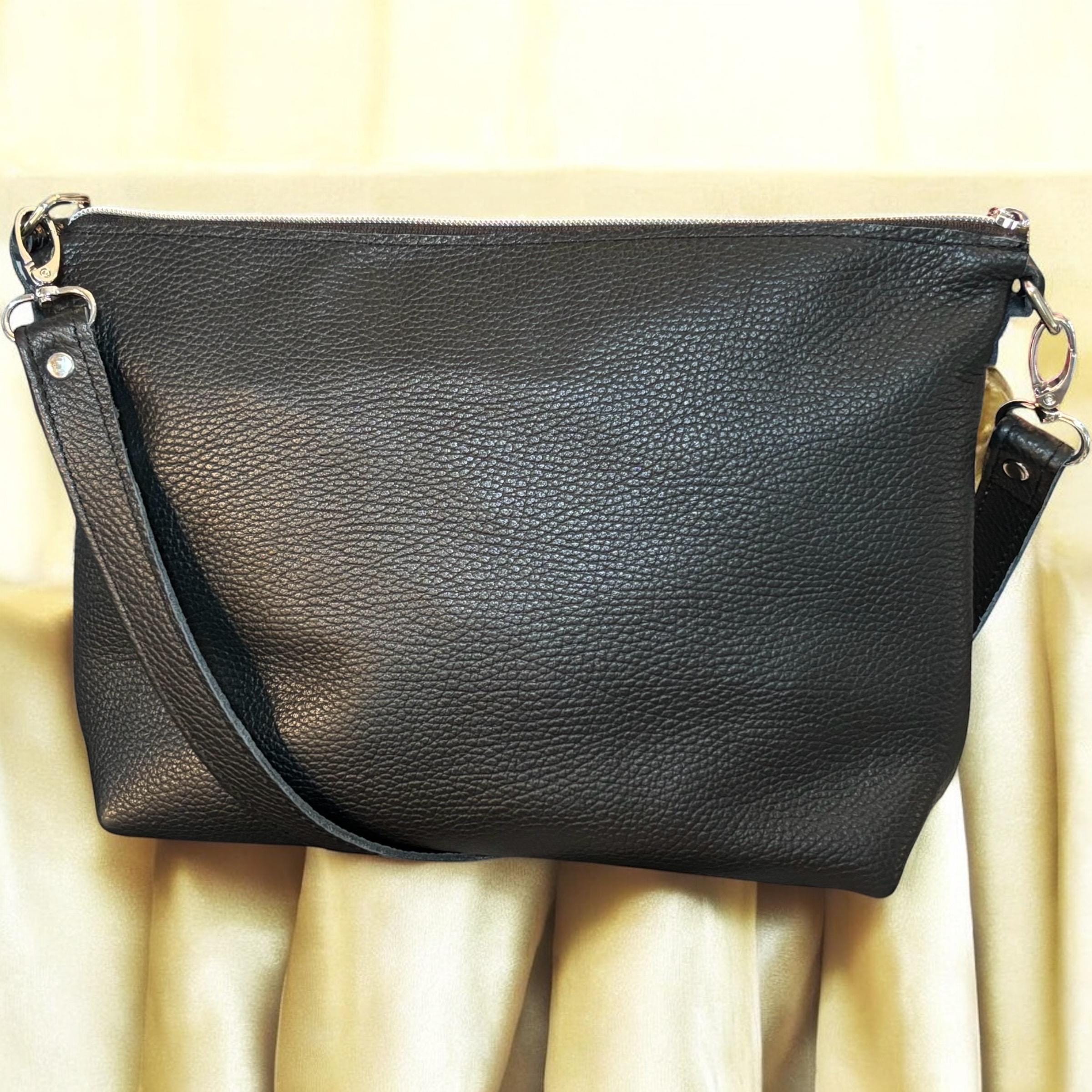 These beautiful Zipper Crossbody or Shoulder Bags/Purses are one of a kind timeless classics. They are all made with 100% genuine leather ranging from 3-5 oz. All exterior seams are double stitched. All come with a detachable shoulder strap making it easy to swap out the shoulder strap for one of your favorite crossbody straps. Outside and inside pockets, Bling Sling or no Bling Sling. It measures approx. 8”” tall, approx. 12” wide, approx. 3” depth and the shoulder strap is approx. 1” wide and has an approx. 10” drop.