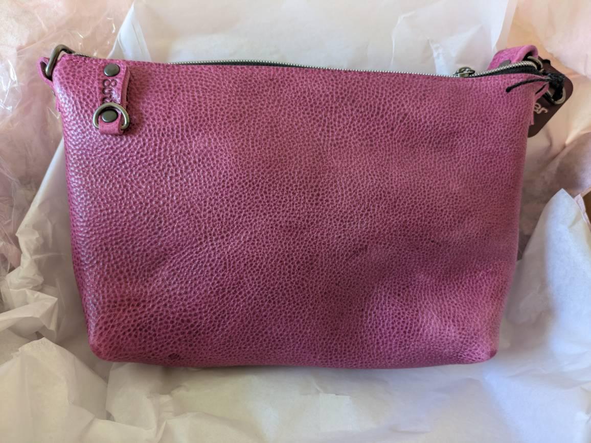 The purse is pretty but has a very strong chemical/leather smell that is almost overwhelming, particularly in closed spaces like my car.