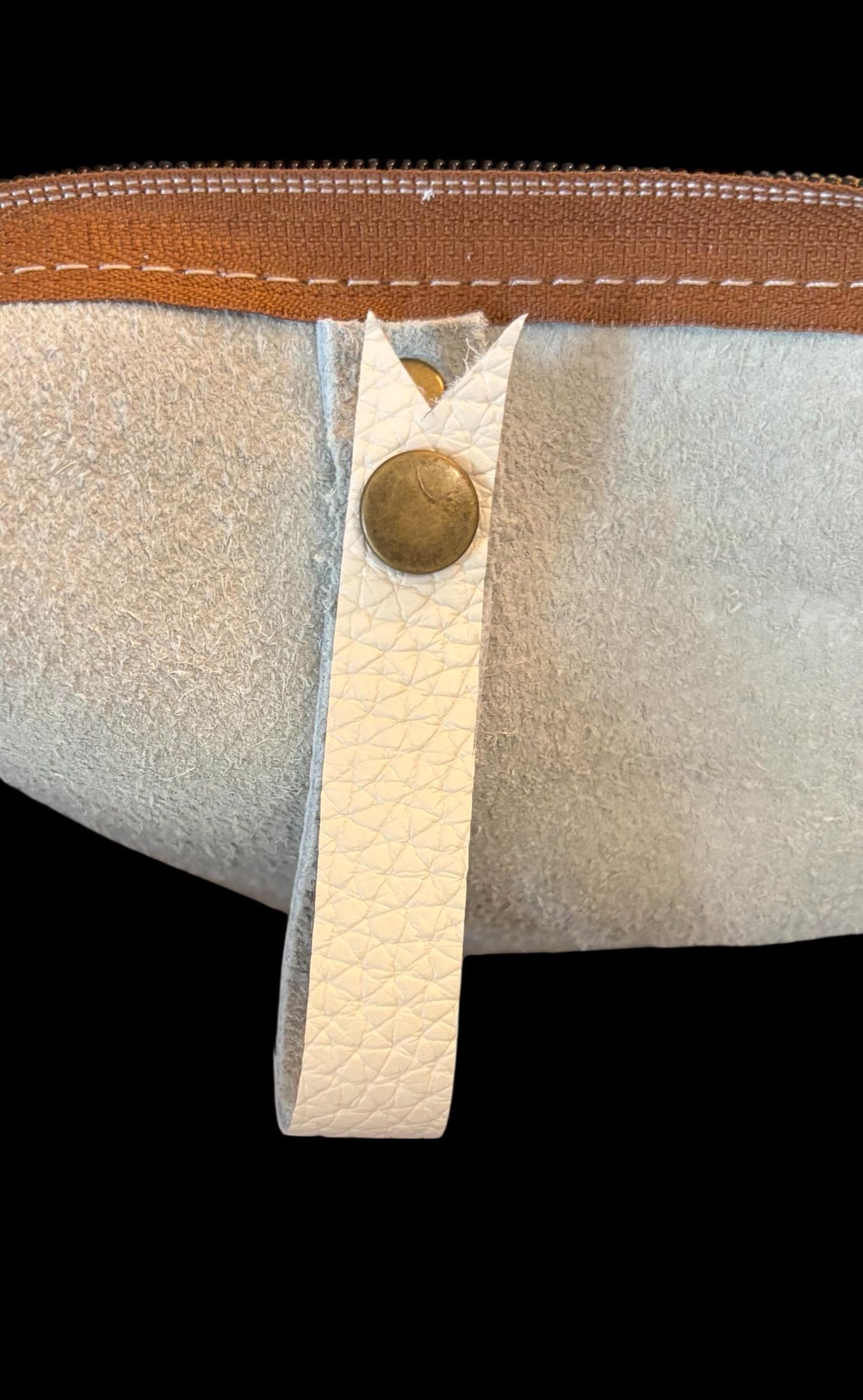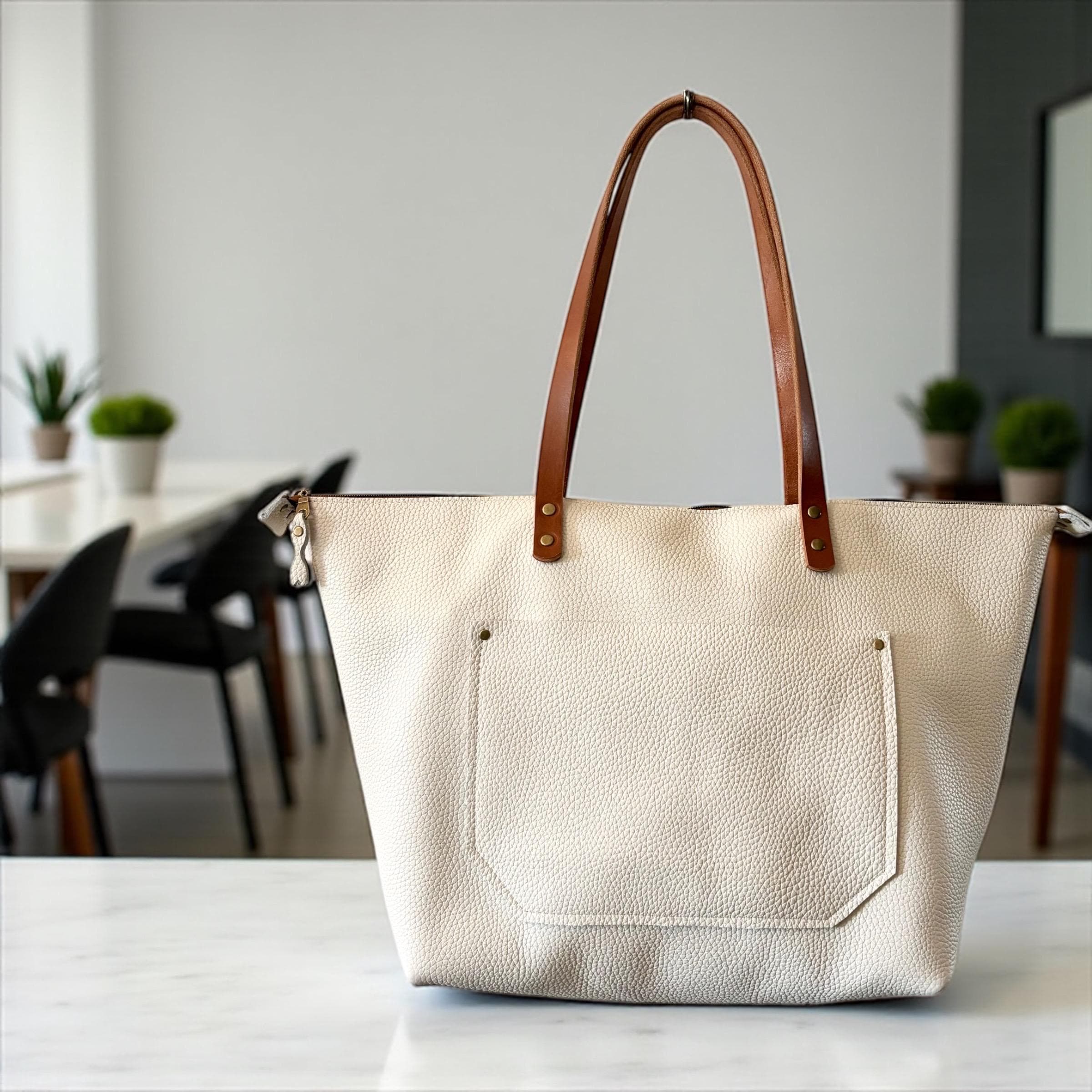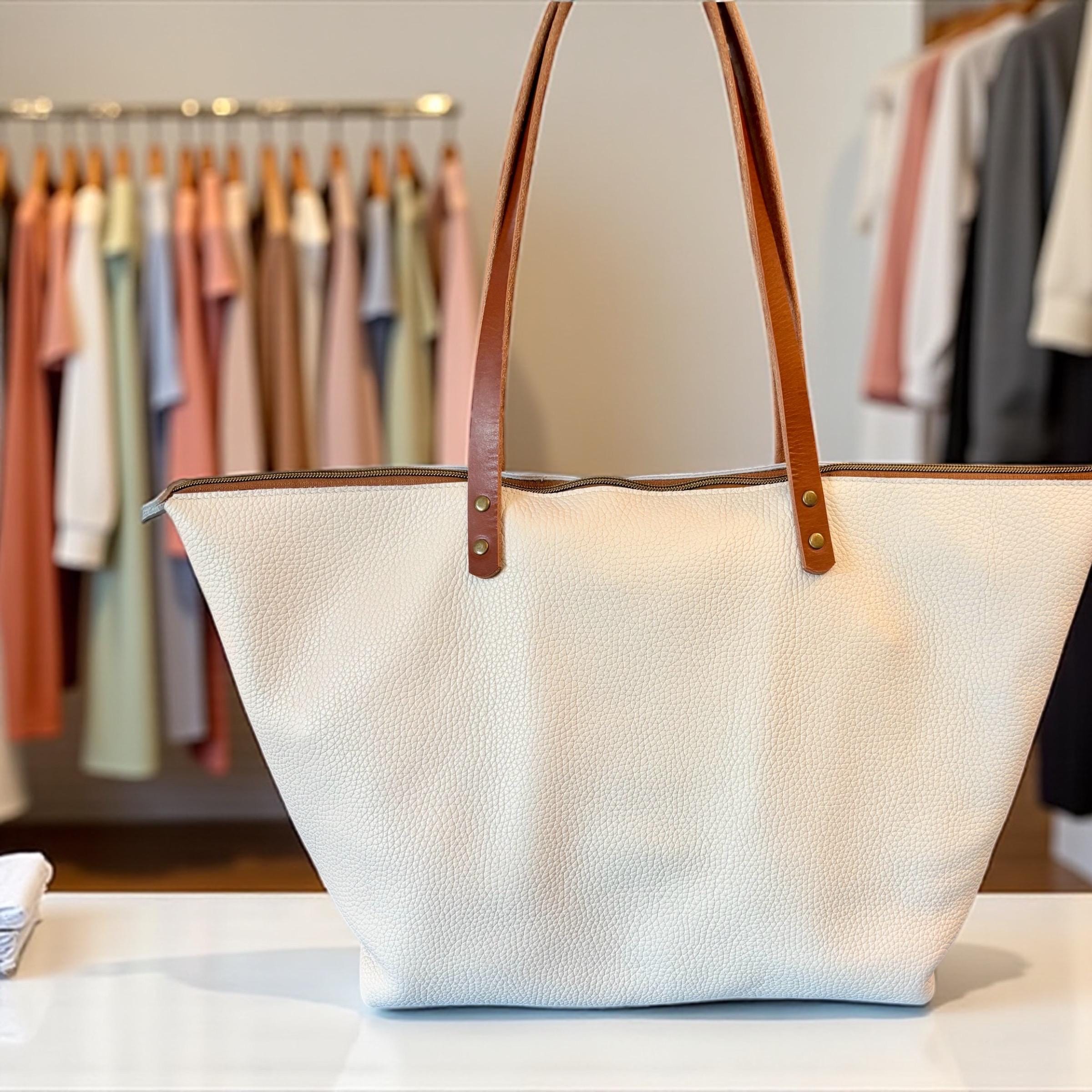 These beautiful totes are one of a kind timeless classics with zippers. They are all made with 100% genuine leather ranging from 3-5 oz. All exterior seams are double stitched. The small tote measures approx. 13" across the top, 10" across the bottom and 11.5” tall. The medium tote measures approx. 15" across the top, 10.5" across the bottom and 12” tall. The large tote measures approx. 18" across the top, 11" across the bottom and 12” tall. The extra large tote measures approx. 21" across the top, 13.5" across the bottom and 13” tall. All size totes have an approx. 11" handle drop. You can pick your bag color, bag size, handle color and fastener color.