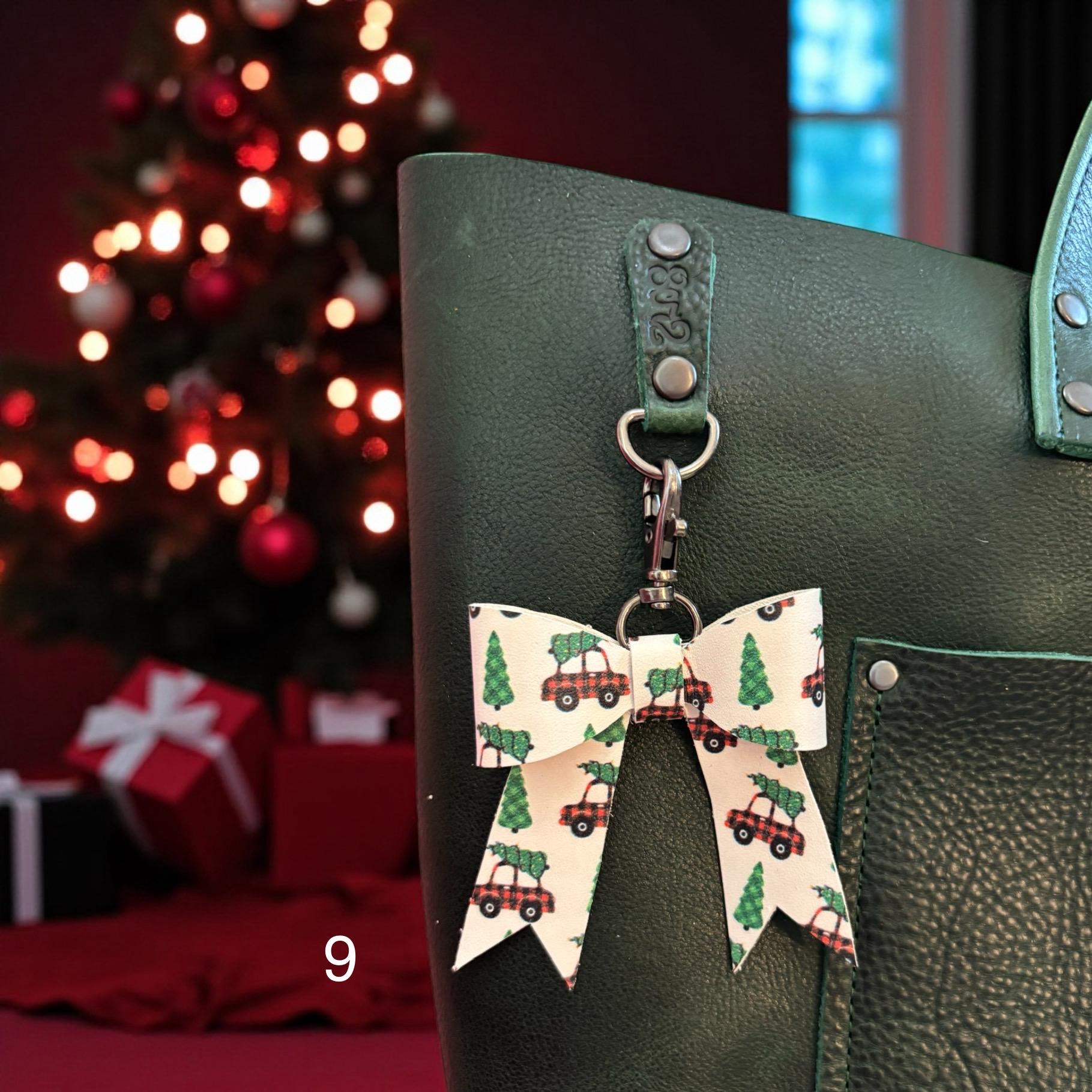 These adorable leather bows are perfect to hang on a bag or purse. They are all made from 100% leather. The large measures approx. 6.5”x4.5”, the medium measures approx. 4.5”x3.5” and the small measures approx. 3”x2.5”.You can pick your leather and hardware color.