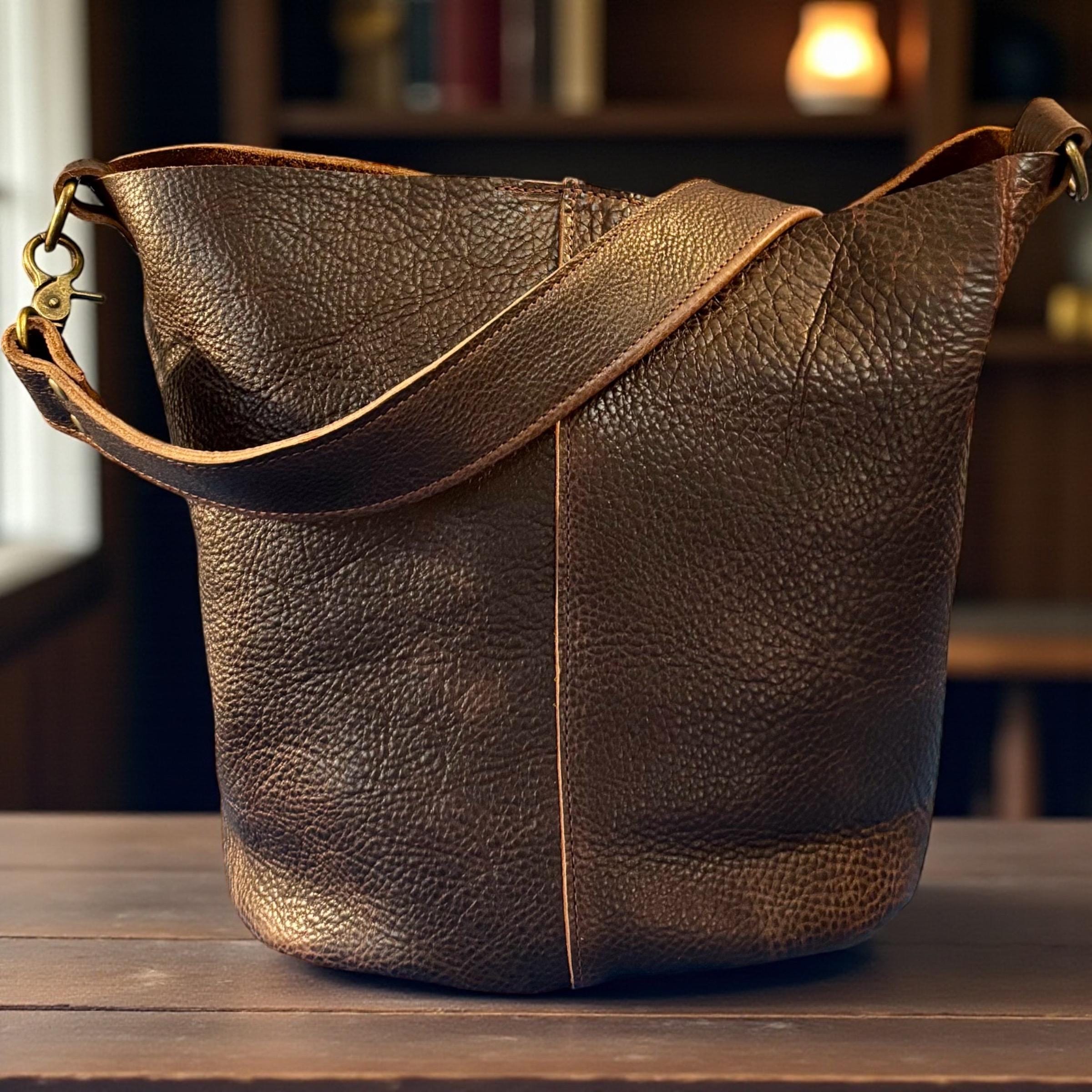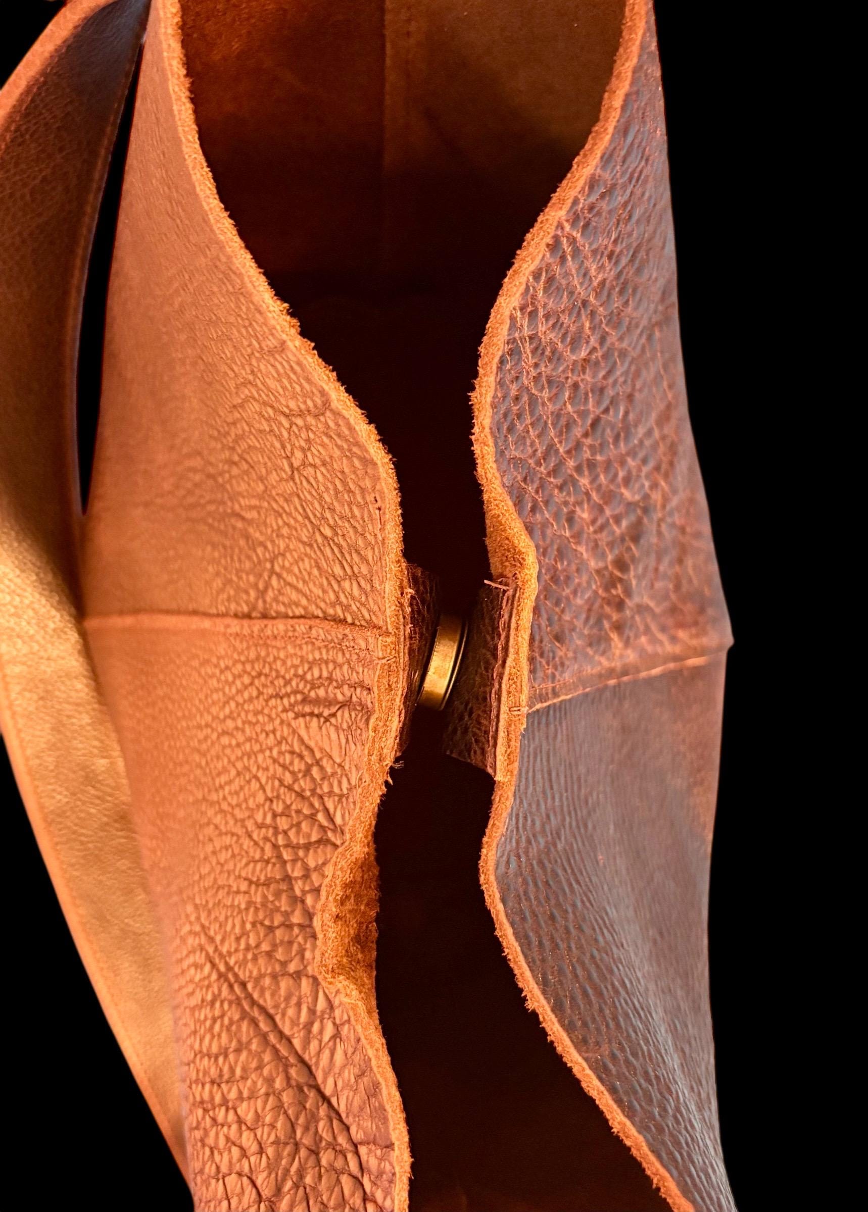 These beautiful Crossbody or Shoulder Bags/Purses are one of a kind timeless classics. They are all made with 100% full grain leather ranging from 3-5 oz. All exterior seams are double stitched. All come with a detachable shoulder strap & D-Rings to add a crossbody strap. It measures approx. 11.5” tall, approx. 16” across the top, 10” across the bottom, approx. 6” depth and approx. a 13” detachable handle drop . You can pick hardware color, magnet or no magnet closure.
