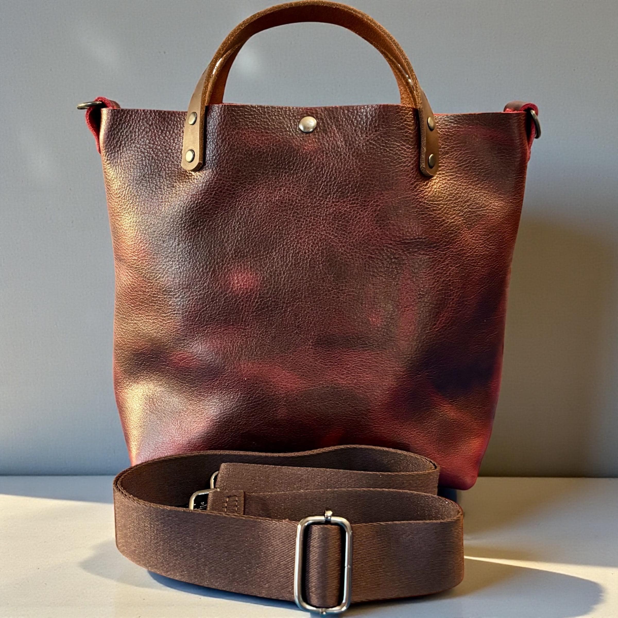 These beautiful Crossbody or Shoulder Bags/Purses are one of a kind timeless classics. They are all made with 100% full grain leather ranging from 3-5 oz. All exterior seams are double stitched. All come with D-Rings on the outside to add a crossbody strap, outside and inside pockets. It measures approx. 11” tall, approx. 12” across the top, 13” across the bottom and approx. 5” depth. You can pick hardware color, grab handle color, grab handles or no grab handles, magnet snap or no magnet snap, crossbody strap or no crossbody strap.